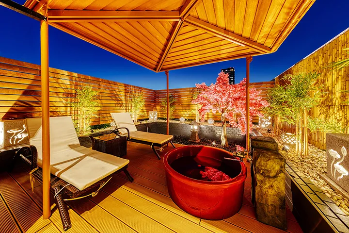 また、地下1階にはカラオケルーム、「206」にはビールサーバーがあり、女子会やビアパーティーなどの利用にも最適。全客室には42インチ以上の大型液晶テレビがあり、VOD、水中照明、マイクロナノバブルシャワーヘッド、無料Wi-Fiを完備し、快適性にも配慮。季節限定メニューを含むフードも提供しており、滞在中の楽しみを多角的に広げている。
