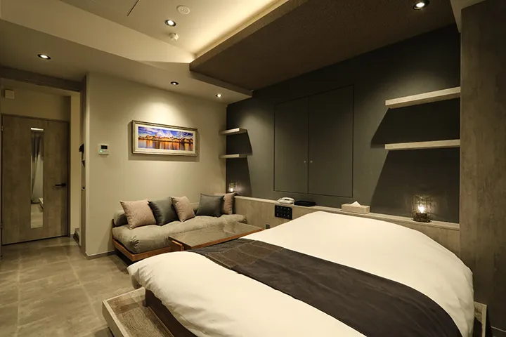 共用廊下には対面防止システムを採用し、他の利用客と顔を合わせにくい設計に。プライバシーに配慮された安心感も、このホテルの大きな魅力のひとつだ。周辺にはサッカースタジアムや野球場があり、スポーツイベントやライブの際の滞在先としても好相性。特別な日にも、何気ない日常の延長にも選びたくなる、上質な大人のためのホテルである。
