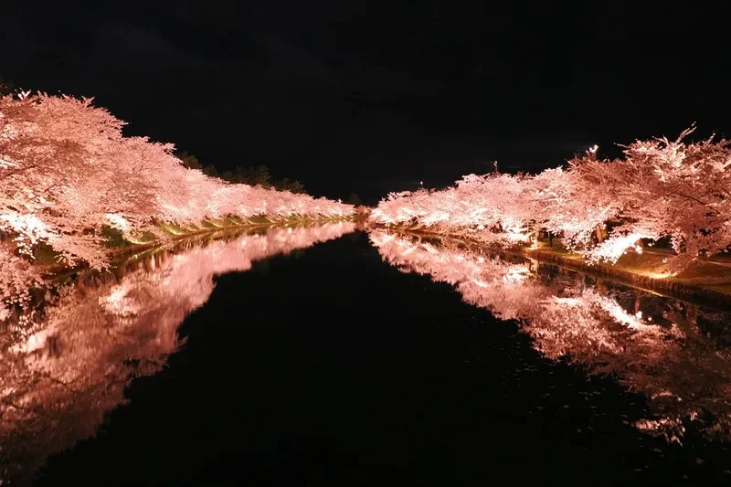 特に見逃せないのが、散り際に見られる「花筏(はないかだ)」。 外堀の水面を無数の花びらが埋め尽くし、ピンク色の絨毯(じゅうたん)が一面に広がる光景は、言葉を失うほどの美しさ。日が落ちれば、ライトアップされた「夜桜」が水鏡に映り込み、幻想的な世界へと二人を誘います。