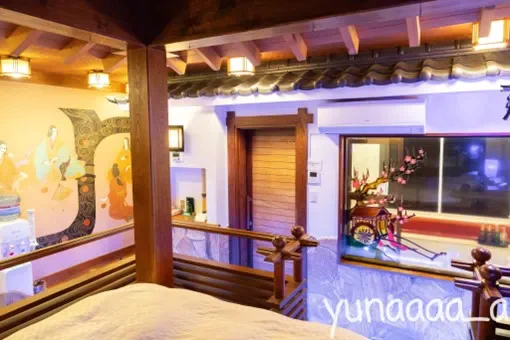 「大河ドラマや時代劇のセットですか!?」と思わず言いたくなる部屋が出迎えてくれる。しかもベッドルームが若干床から高くなっていて、階段がついているというのも心憎い演出だ。すぐに使用したい気持ちを抑えて、様々な角度から鑑賞してみてはいかが?