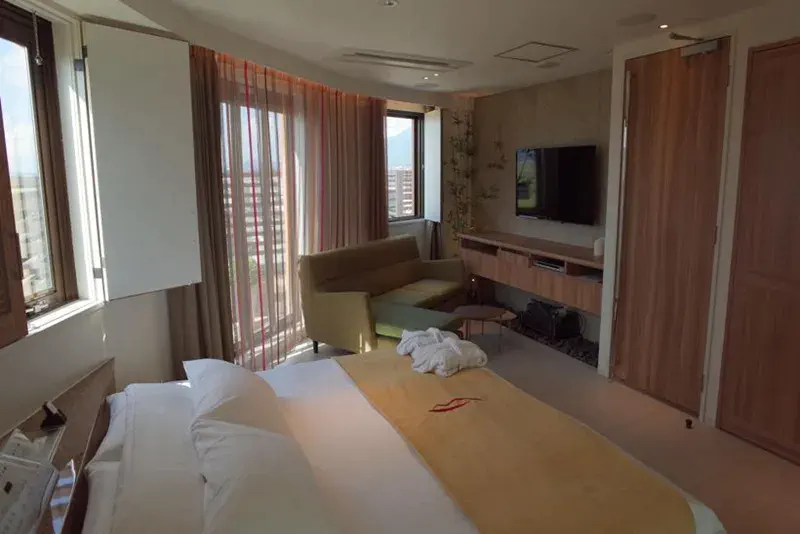 山形空港から徒歩5分の距離にある「HOTEL SULATA 山形空港」は、客室の窓から飛行機の離着陸が見える珍しいホテルです。外観・内装共にデザイン性が高く、高級感に溢れています。和室や洋室、禁煙ルームなどもあるほか、同性利用ができるので、様々なニーズに答えるホスピタリティを感じます。