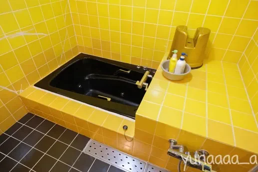 浴室は黄色いタイルが印象的。