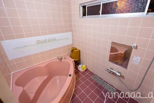 浴室はピンク系のタイルで統一されていて、バスタブは半身浴をするにも良さそうな構造です。