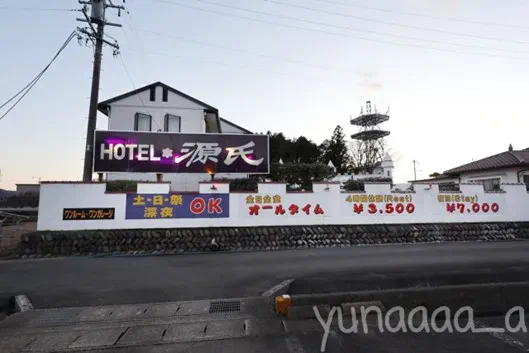 私は富加駅から歩いて向かったのですが、ホテルに近づくにつれて高揚感が高まるばかりでした。外観や、看板を見た瞬間「一生のうちに来れてよかった」という気持ちが込み上げました。昭和ラブホらしい「源氏」という漢字2文字の渋いホテル名もたまりません。