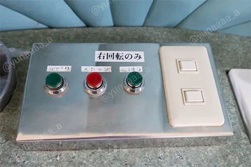 左回り・ストップ・右回りのボタンがあります。※現在は左回転が故障中で右回転のみ