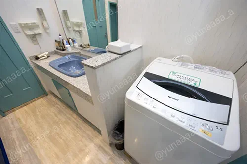 一部の部屋にだけあるのかと思いきや、全部屋に設置されていて、ちゃんと乾燥機能も付いています。急なお泊まりや、連泊したい人には嬉しい設備ですね。洗剤はメンバー様だと無料、ビジター様でも100円で購入することができます。