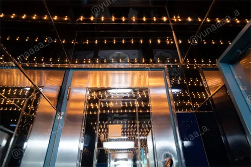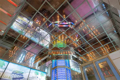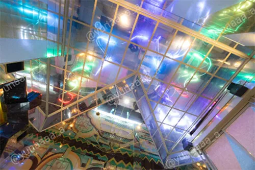 よく見ると天井も鏡になっていてネオンのチューブのようなものが埋め込まれています。カラフルな光が鏡に反射してとても美しいです。